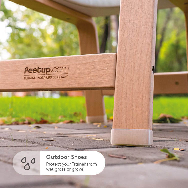 FeetUp Trainer ti aiuta a raggiungere posizioni invertite in un modo unico e delicato. Il peso corporeo è distribuito uniformemente sulle spalle, consentendo alla testa di penzolare delicatamente e allungare la colonna cervicale. Realizzato in Europa con materiali di provenienza sostenibile, FeetUp Trainer è il miglior attrezzo yoga per sviluppare più forza, flessibilità ed equilibrio.